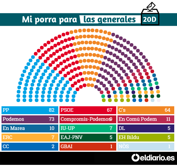 ¿Tú también quieres hacerla? Podrás compartirla con todos tus amigos y retarles a que ellos también se mojen y digan cómo creen que va a quedar el Parlamento.